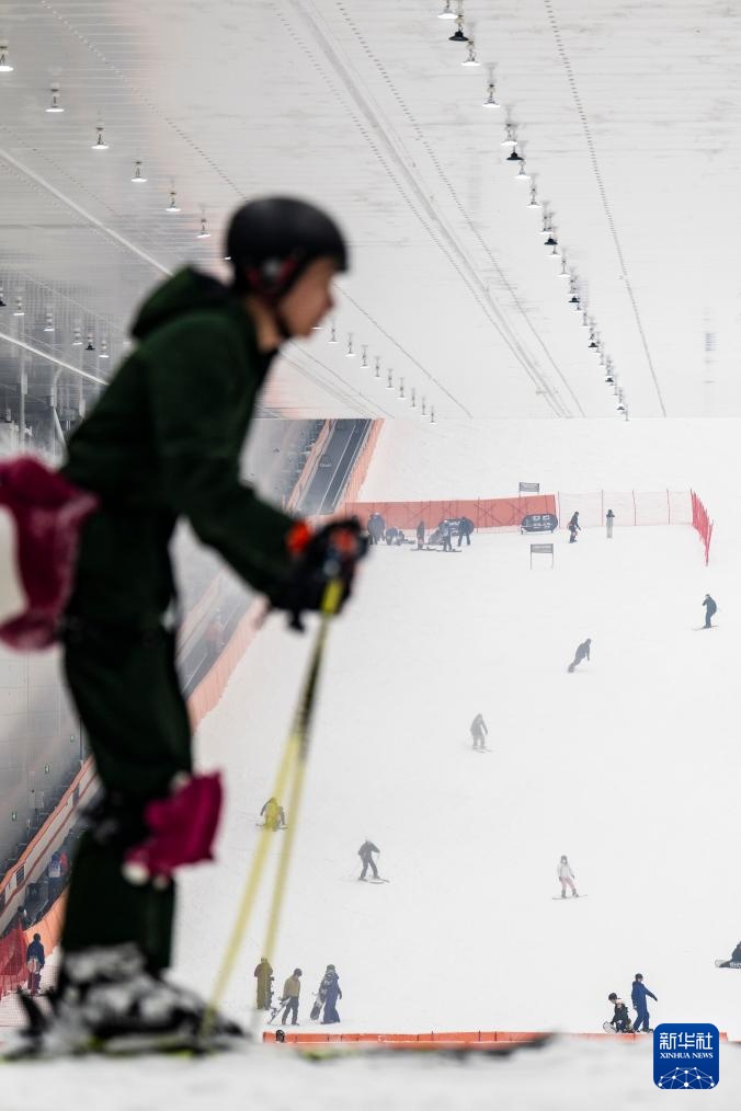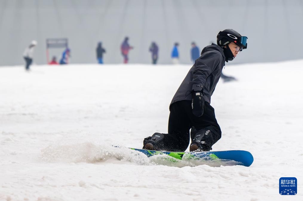 1月13日,旅客在武汉城建热雪古迹室内滑雪场滑雪。新华社记者 杜子璇 摄