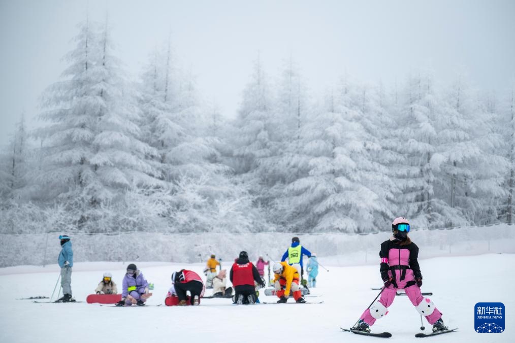 1月20日,旅客在神农架国外滑雪场滑雪。新华社记者 杜子璇 摄