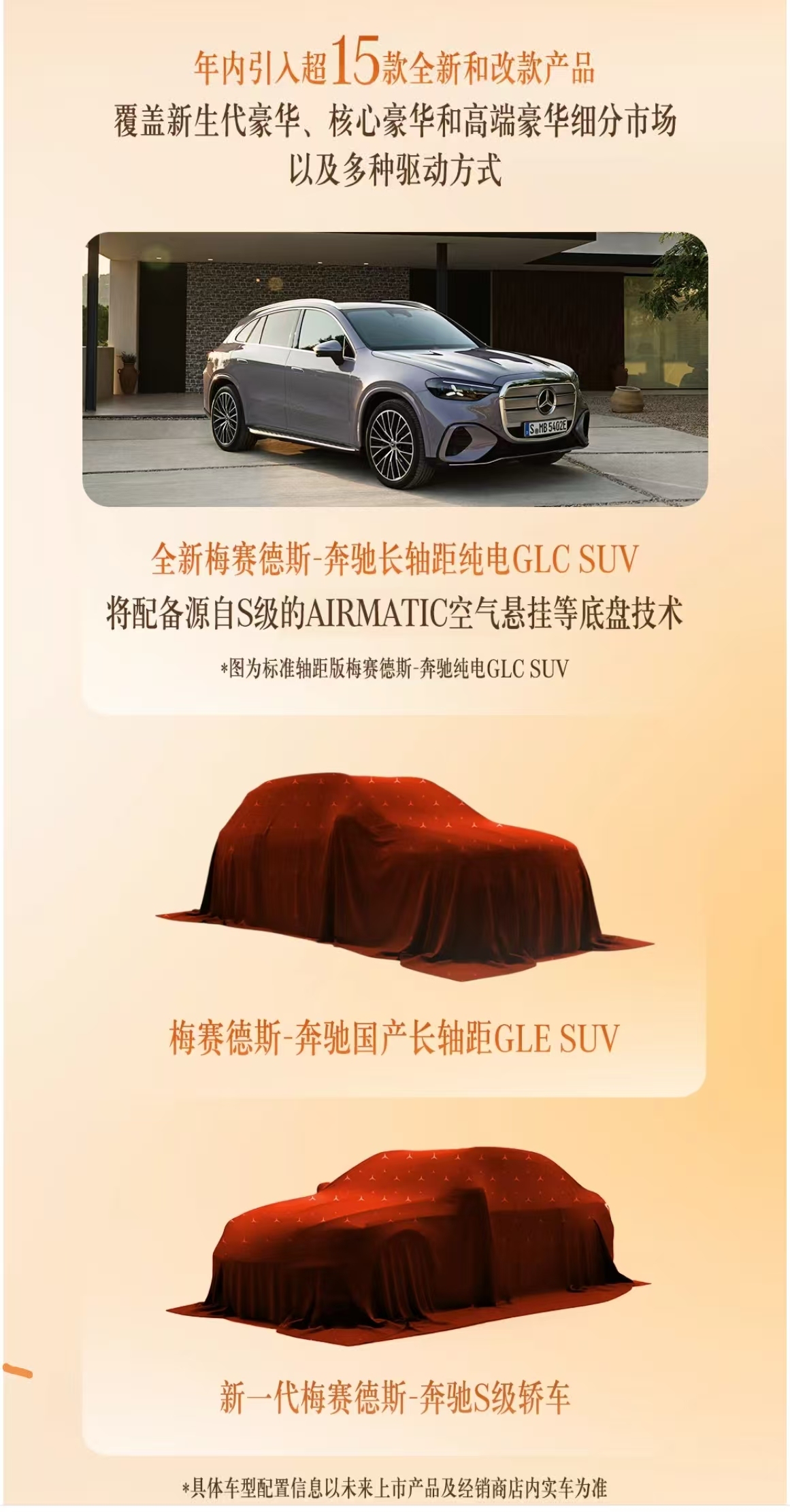 按照决策,飞驰将遵照“油电同质、油电同智”政策,本年在华将导入15款全新车型,隐匿全豪华细分商场与多开动步地,MB.EA、AMG.EA、VAN.EA三大全新纯电架构均有新车亮相。其中,全新纯电版GLC SUV,搭载AIRMATIC空气吊挂,精确适配中国用户需求;新一代S级轿车、国产长轴距GLE SUV新车型同步投放,夯实高端产物矩阵。
