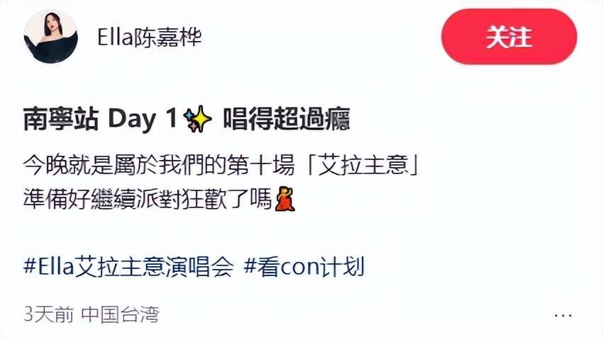 从2月7日至8日,陈嘉桦的「It’s Me 艾拉意见」巡演登陆南宁,这亦然她这次巡演的第十场上演,场场秒罄的票房成绩,足以看出不雅众对她的喜爱。