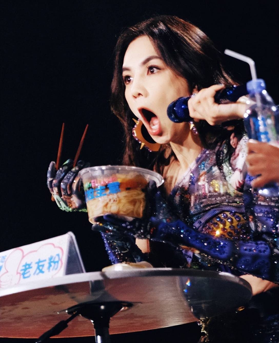 这场上演里,她还在舞台上上演嗦粉名所在,至好粉和螺蛳粉接连登场,她毫无偶像背负地大口嗦粉,吃到尽兴时还直呼吃到至好粉就有种回家的嗅觉。