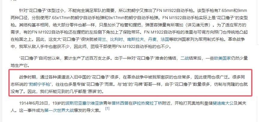 第二个:楚云飞送的勃朗宁手枪并不保重,楚云飞第一次见到李云龙时,就把我方兜里的手枪送给了李云龙,其后,李云龙也回赠了一把佐官刀,好多东说念主合计是李云龙赚了,实则是楚云飞捞了一笔,因为他送的这把手枪根柢不保重,这把手枪全称叫勃朗宁FN M1910,花名花口撸子,况兼因为弹容量小,伤害低被各式嫌弃。