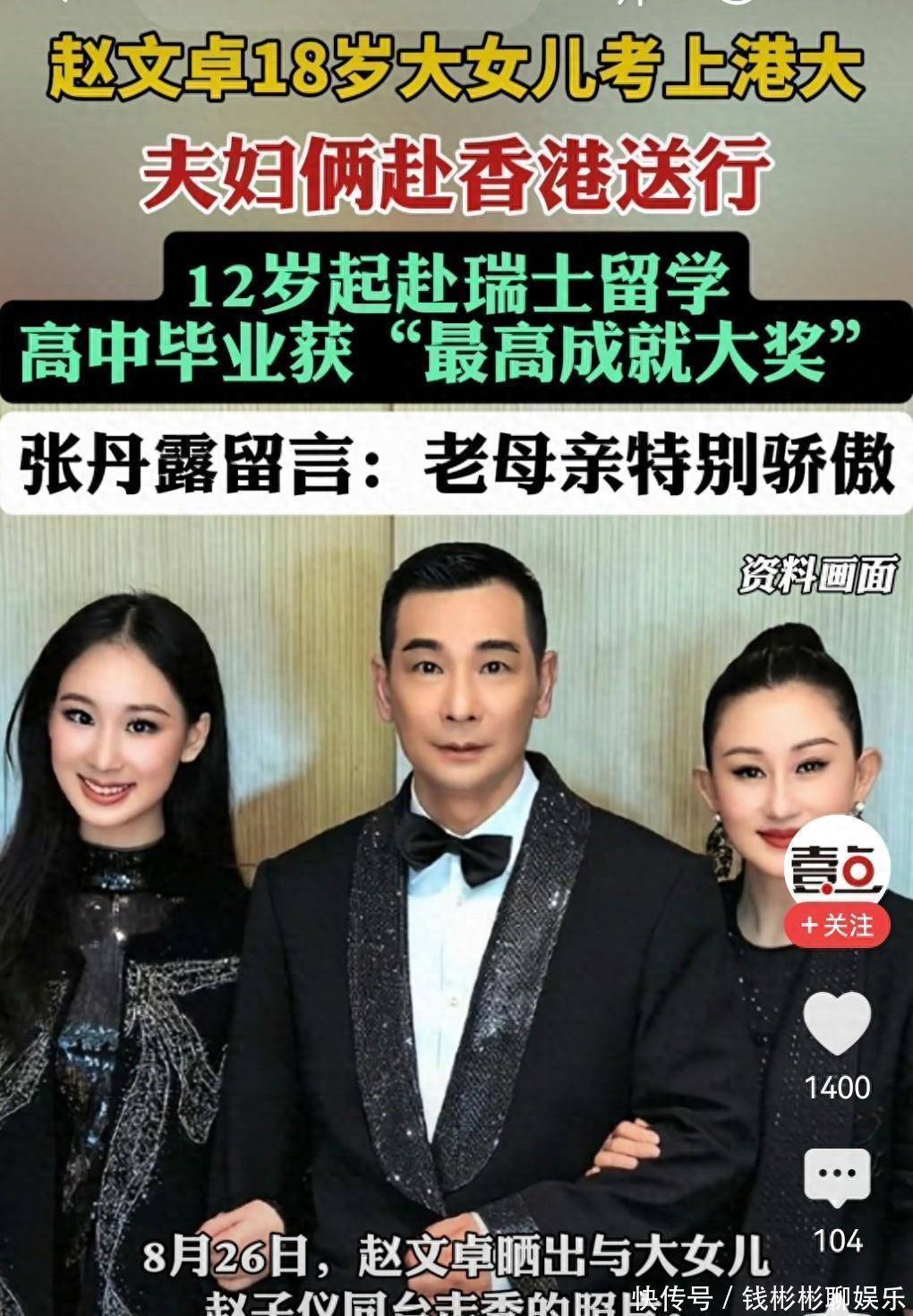 近日,赵文卓大男儿赵子仪捷报传来,她以优异得益收效考入香港大学。赵子仪自幼就赶赴瑞士留学,在肄业之路上不时拼搏奋进。她实力轶群,一举斩获生物、艺术双料大奖以及 “最高成就奖”。在如今这个 “星二代” 常被贴上多样标签的时间,赵子仪用我方的勉力和才华冲突偏见,向世东谈主证实注解 “星二代” 并非只可靠门第,也能凭自己才华绽放耀目晴明。她就像一盏明灯,为开阔后生学子成就了自立不停、勉力高亢的好榜样。
