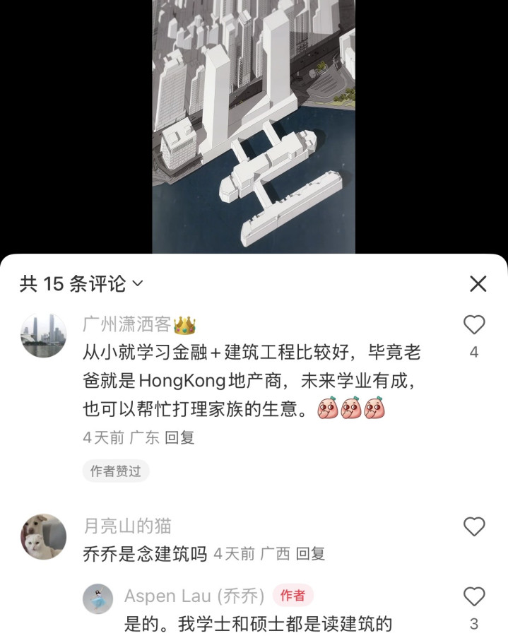 至于毕业后是否从事有关使命,刘秀盈倒是莫得说起,不外有网友留言称,刘秀盈从小就学金融加上建筑工程比拟好,毕竟老爸便是香港地产商,改日学业有成,也不错襄助收拾眷属商业。刘秀盈关于这个挑剔倒是忽闪其词,莫得复兴,莫得否定,倒是点了一个赞。不知说念是认同改日不错襄助收拾眷属商业,照旧隧说念点赞辛勤,不外这也评释她并不造反日后襄助收拾家业。