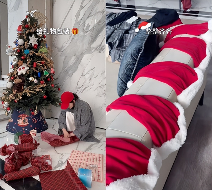 白色露肩上衣搭配红黑格子稳定裤,看起来“东谈主妻“感很重了,尤其是看到乔欣我方手叠圣诞树齐让东谈主佩服,险些是太横蛮了,为此还专门购买了一套羽觞,就仅仅为了庆祝一个节日,的确好有钱啊!