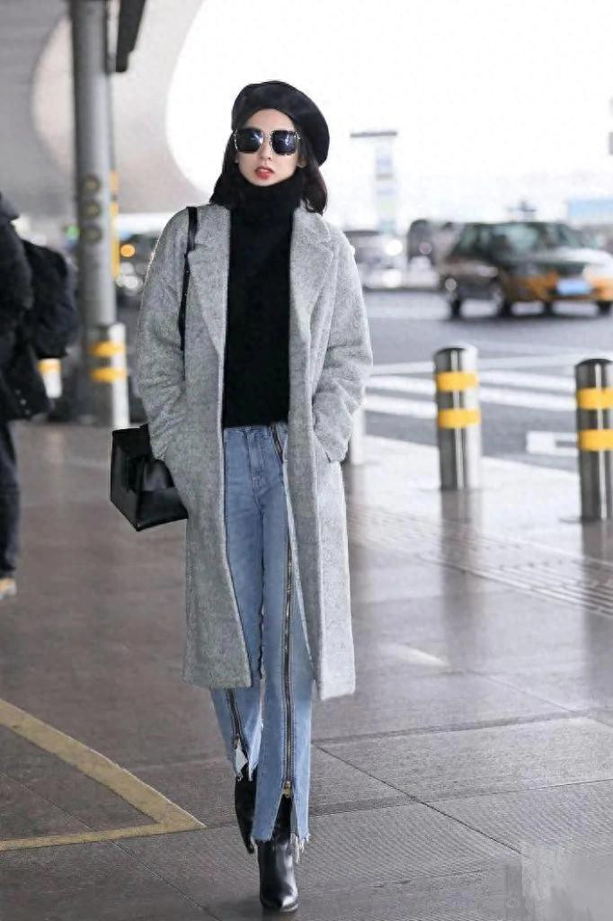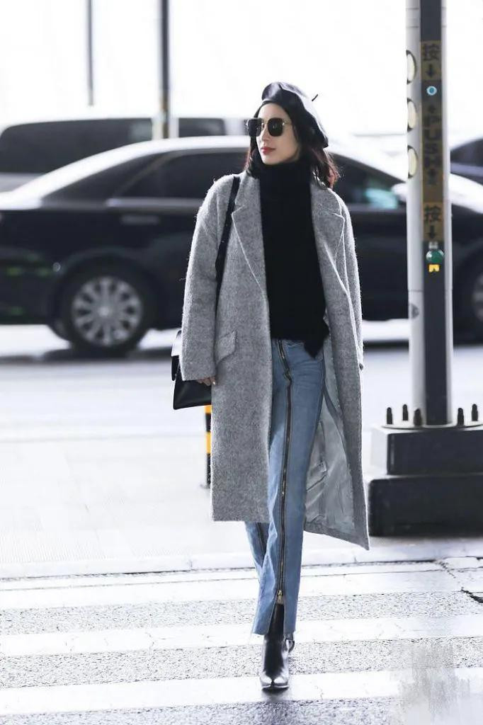 穿灰色大衣+牛仔裤+贝雷帽开云「中国」Kaiyun官网登录入口,好意思丽减龄又洋气!