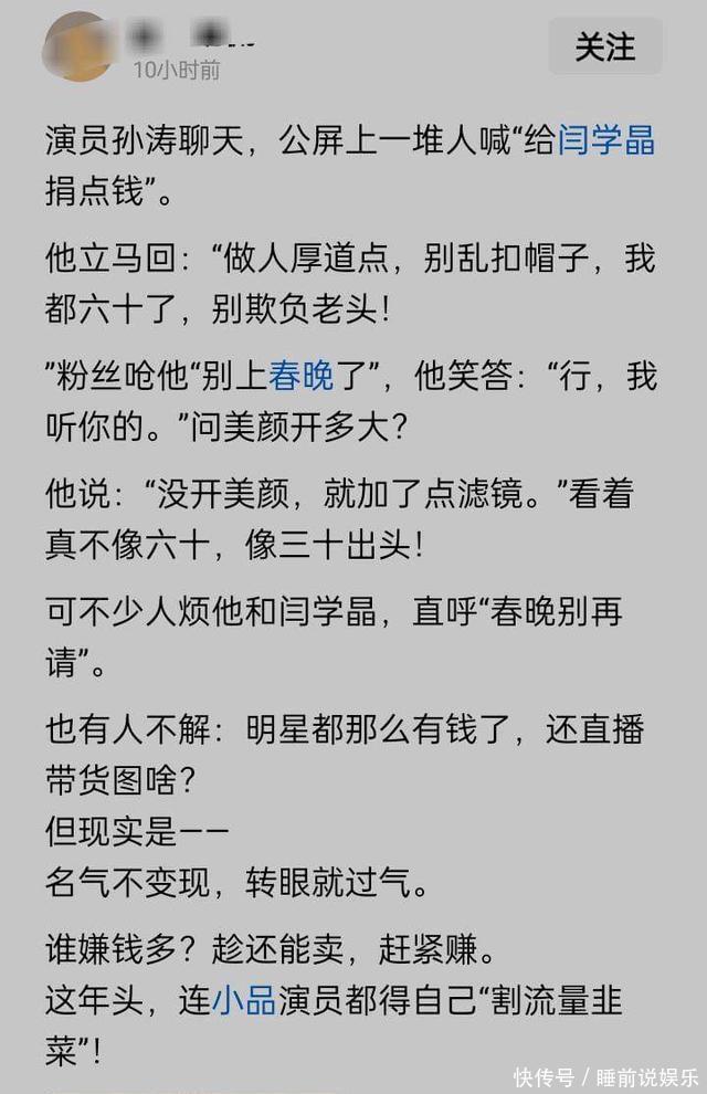 最近孙涛在直播里那声“我齐六十了开云「中国」Kaiyun官网登录入口,别凌暴老翁”,听得东说念主心里挺不是味说念的。他不是真缺钱,更像是在用一种近乎自残的幽默,挡开那些扑面而来的戏谑和注视。这跟当年春晚舞台上阿谁腰板平直、一脸浩气的军东说念主形象,反差太大了。一个时间往时了,他们身上那种被央视舞台镀上的金身,在直播间的强光灯下,正片片剥落。