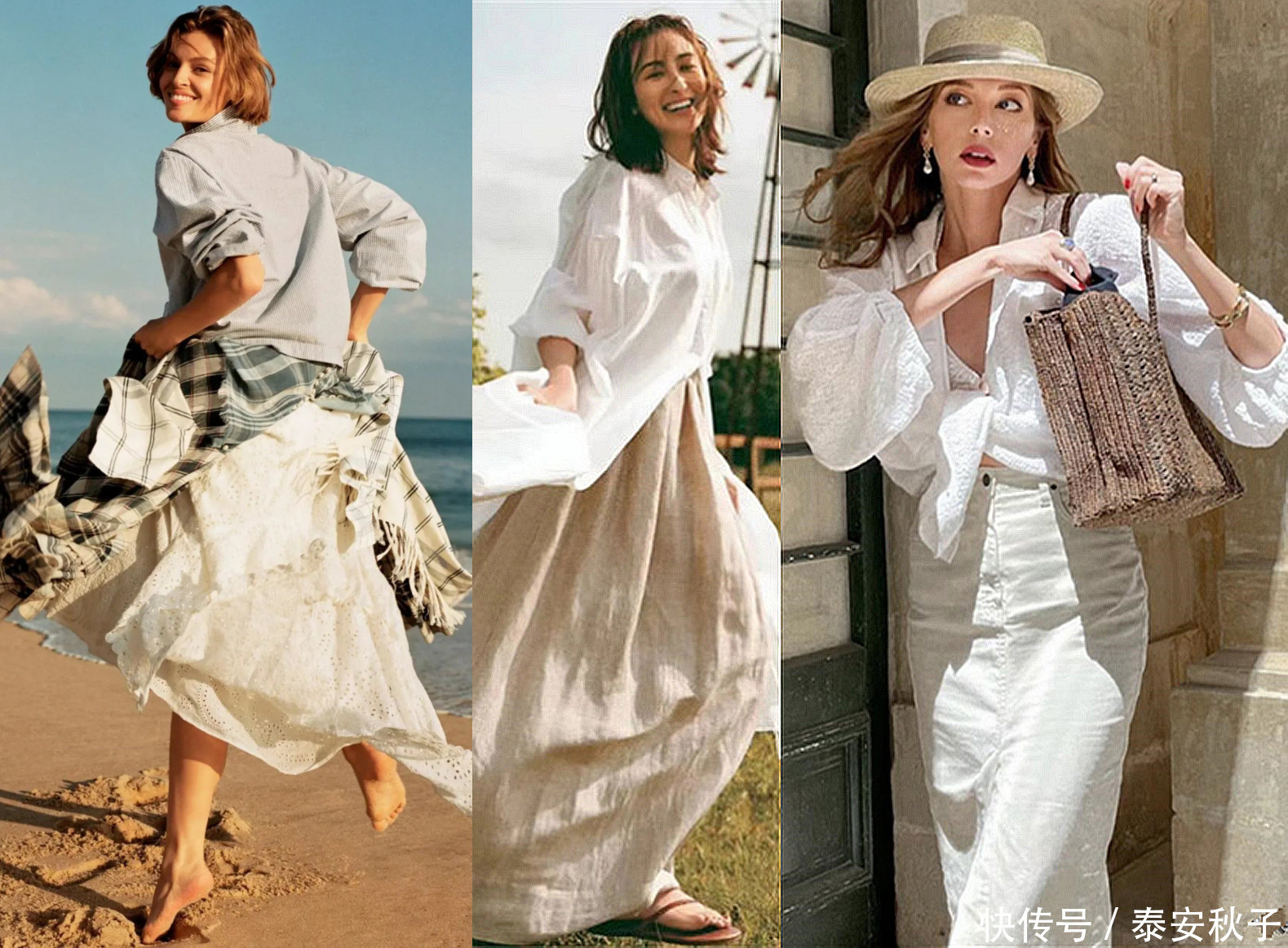 将优柔、眇小的亚麻材质,与修身、优雅的裙身集中,就构成了当下娴雅精们最酷好的亚麻裙。