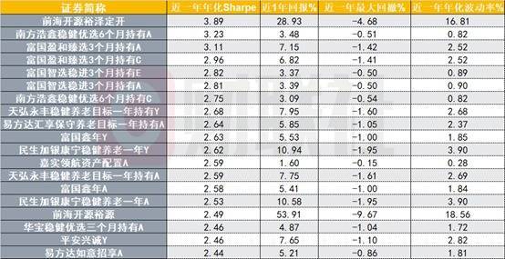 图:近一年夏普比率居前的偏债羼杂FOF
