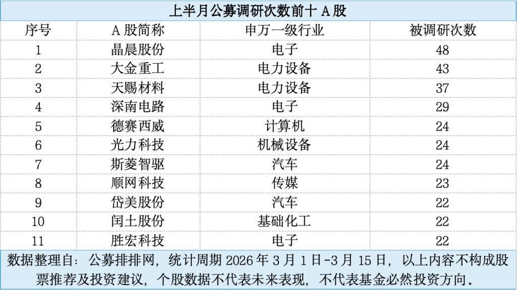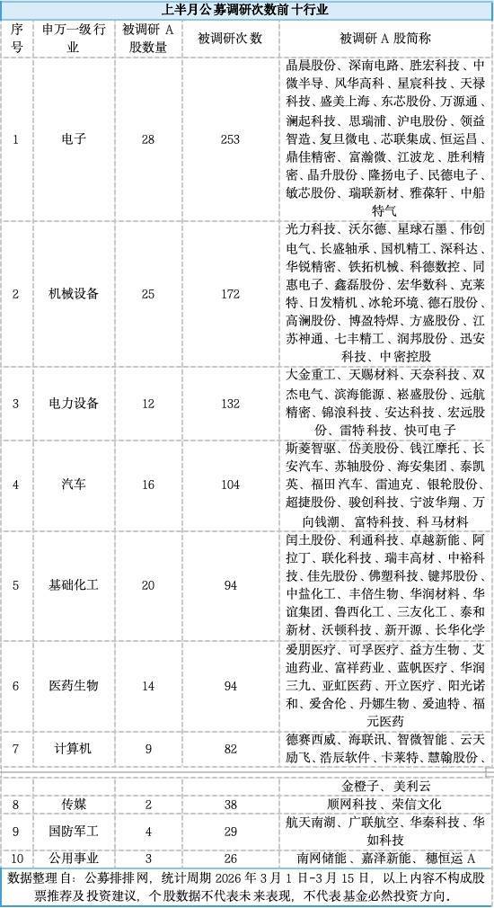 数据知道,3月上半月(2026年3月1日-3月15日)共有144家公募机构参与A股调研行径中,障翳到27个申万一级行业中的127只A股,所有这个词调研次数达1206次。
